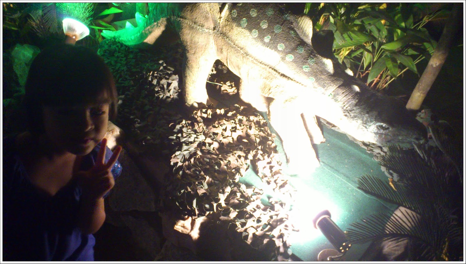 Okeh.. pastuh kite letak adek yg tgh sibuk membuta plak kat depan dinosaur...